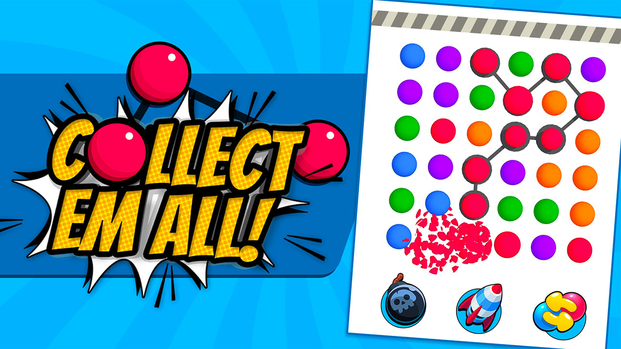 Collect Em All! Is a puzzle game where you connect all the adjacent same colored blocks. Make long chains of colors to create beautiful sounds and unlock explosive power-ups!Connect the dots to crush them. You can make a limited number of moves, and you cannot go back on yourself, so make sure to plan your path. Create the longest chains for the biggest reward! Come back every day to unlock new daily bonuses !Easy to control, simple tap on the block and swipe across the adjacent same-colored blocks! Watch out your moves, you need to achieve the objective before you run out!Make incredible combo moves to unlock power-ups that explosively clear and shuffle the ball board. The craziest chains earn you bonus moves, so keep getting those long lines to stay in the game and rack up your best score yet.